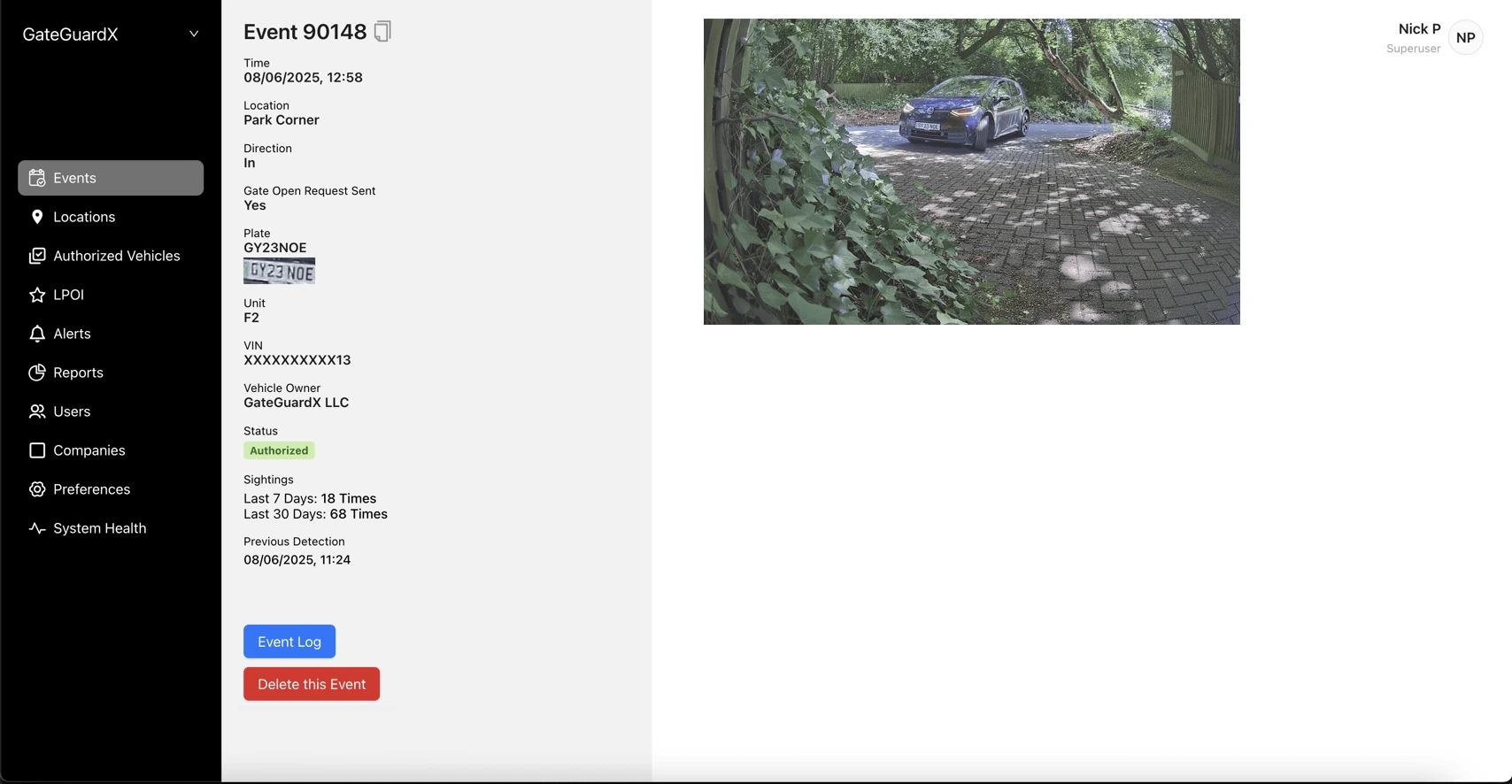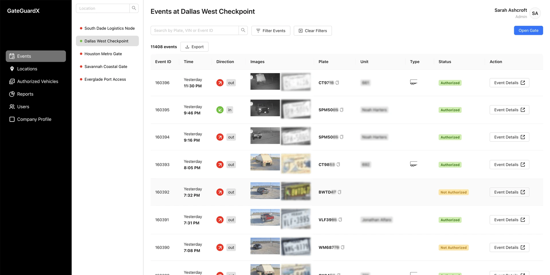 Complete photo and timestamp logs of every gate event for security and compliance.
